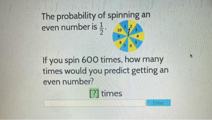 Solved The Probability Of Spinning An Even Number Is 1 1 2 3 Chegg Com